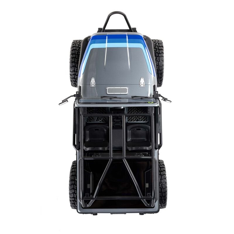 Axial designers had fun with this one. Additional scale details include a functional center console, removable coffee tumbler and soda can, transfer case twin stick shifters, automatic transmission shifter, bucket seats with slots for optional seatbelt harnesses, folding side view mirrors, and more!