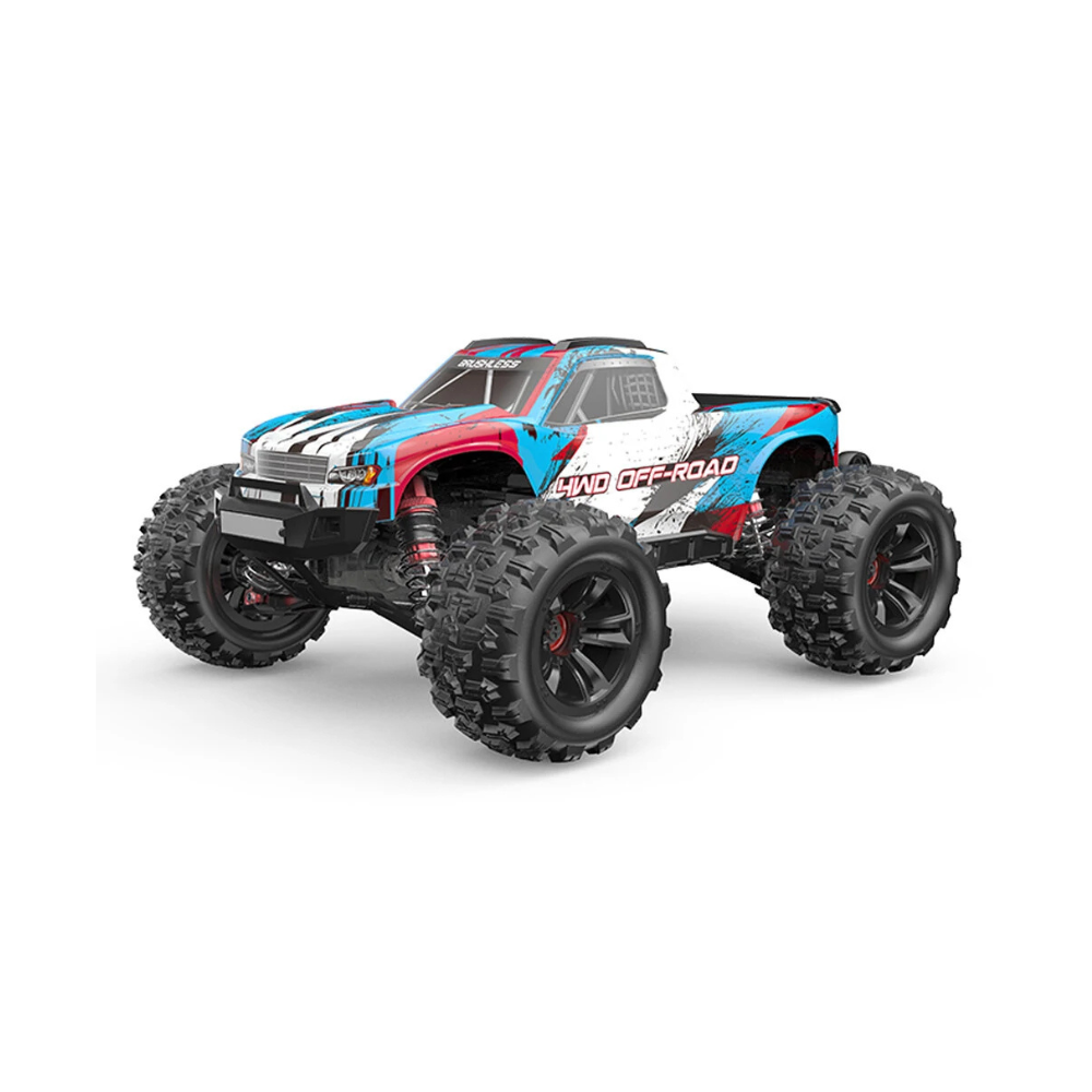 Push the throttle hard off-road and still never lose control – the Hyper Go monster truck in 1:16 scale accelerates up to 45 km/h(68kmph with 3s Lipo Battery) with its 2845 brushless racing motor and ensures precise handling with regulation options. These include two adjustable top speed settings, a fast steering servo for agile direction changes, adjustable aluminium oil-pressure shock absorbers, adjustable suspension and an adjustable wheelie bar. Metal CVD drive shafts, metal propshaft and 45A brushless controller incl. active fan round off the equipment.